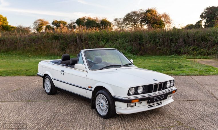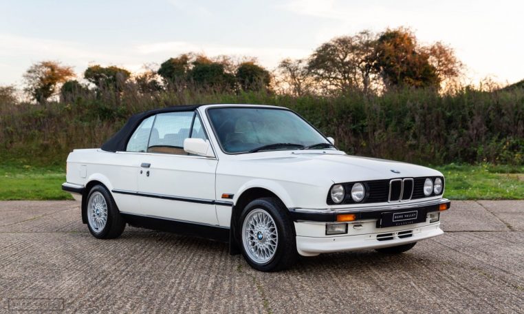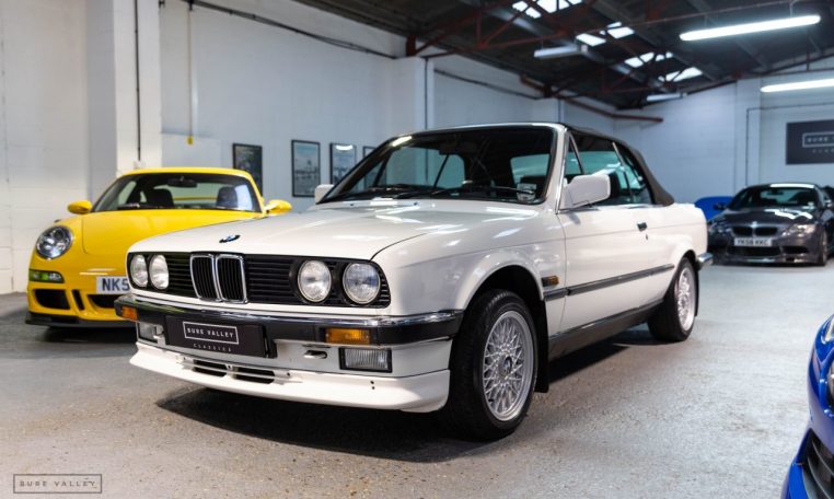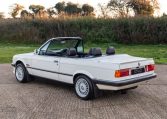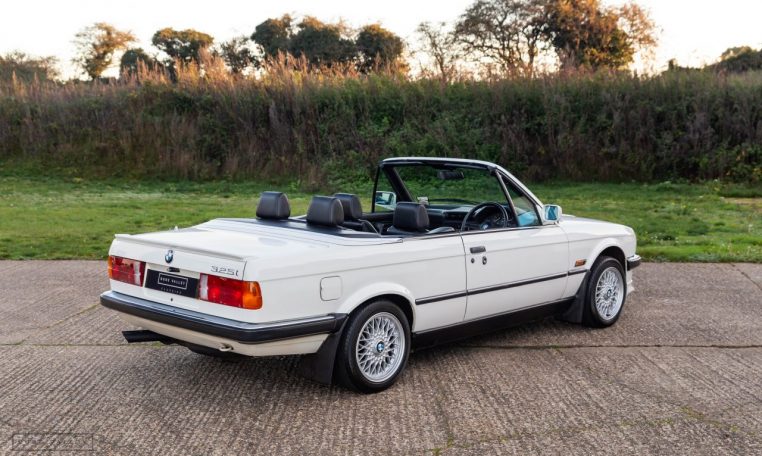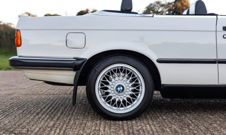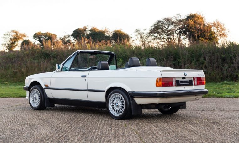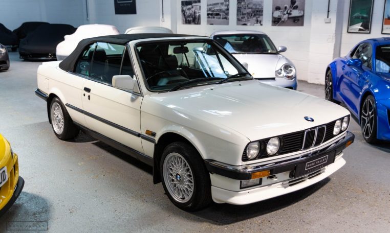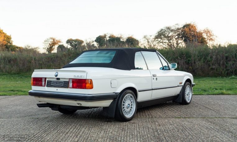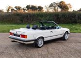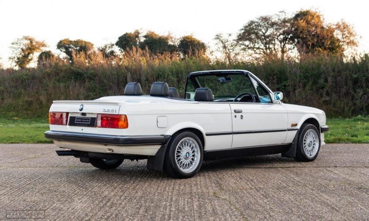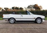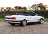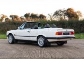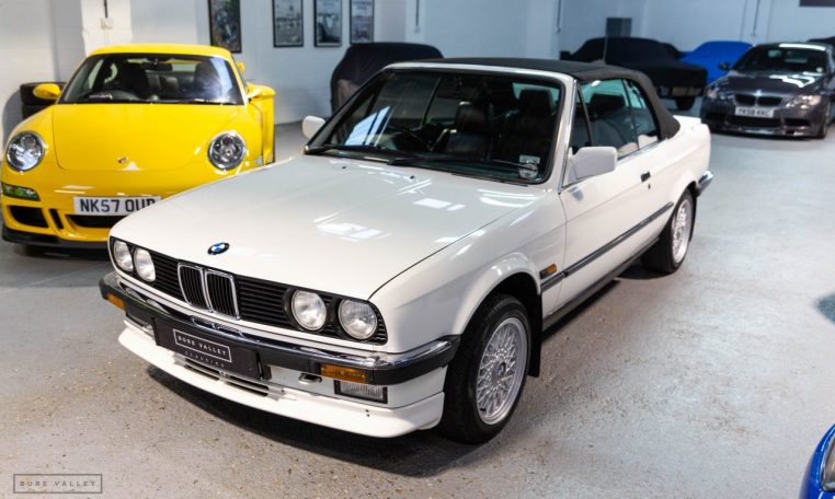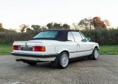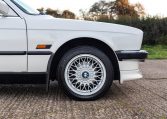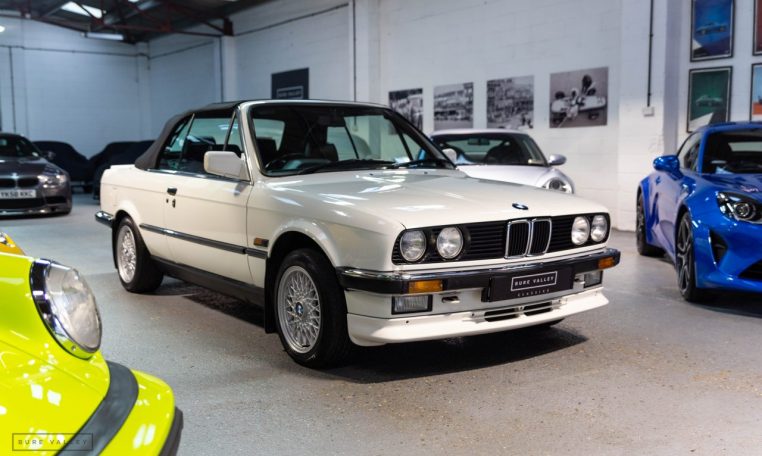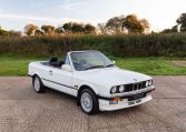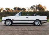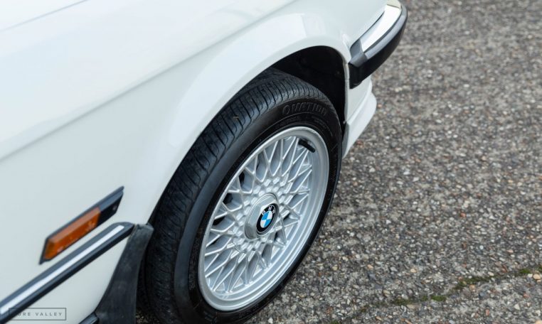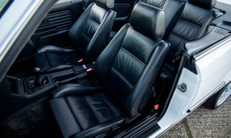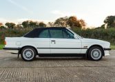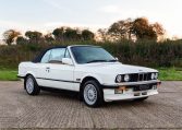 Presented in classic Alpine White with a full Black leather sports interior, this stunning BMW 325i convertible is not to be missed. A hugely original, low mileage example, with just one owner up to 2021. The paintwork is completely original and is in excellent condition throughout. No rust, all solid in the usual problem areas such as arches, sills and jacking points. The black sports leather is again in lovely condition, soft leather, original floor mats and carpets, lovely door cards and unmarked dash. The original Pioneer dealer stereo is still present and working correctly, complete with the original manual. This BMW features 15 inch BBS alloys, with matching tyres all round. Benefiting from a full service history from BMW main dealers and specialists. All the original manuals are present, along with the fully stamped original service book, a folder full of the all the old service receipts and all old MOTs, a full set of keys and complete original toolkit. Also the original factory alarm key is present, a rare option on these early E30s. The manual roof is in lovely condition, Black, not faded, opens and closes easily. The 2.5L straight six engine starts on the button, sounds and runs perfectly, nice and quiet from cold, no hesitation and the 5 speed manual gearbox is a pleasure to use. The belts have just been changed and an inspection carried out by a BMW specialist, confirming the overall condition of the car is very good and is completely solid. It’s very rare to find these cars in such original, unmolested condition. Prices are on the move and this car ticks all the boxes for an investable classic E30 which can still be used and enjoyed.