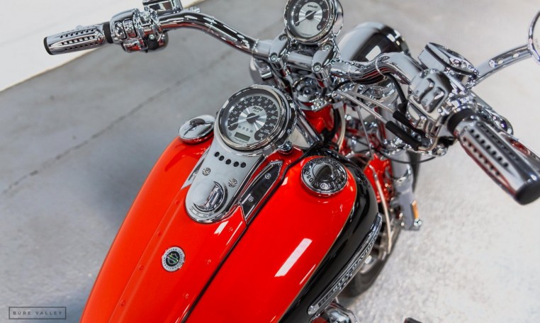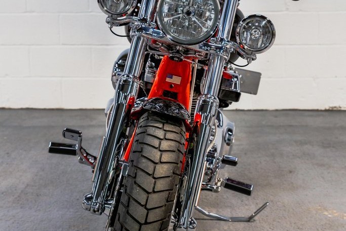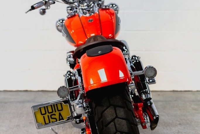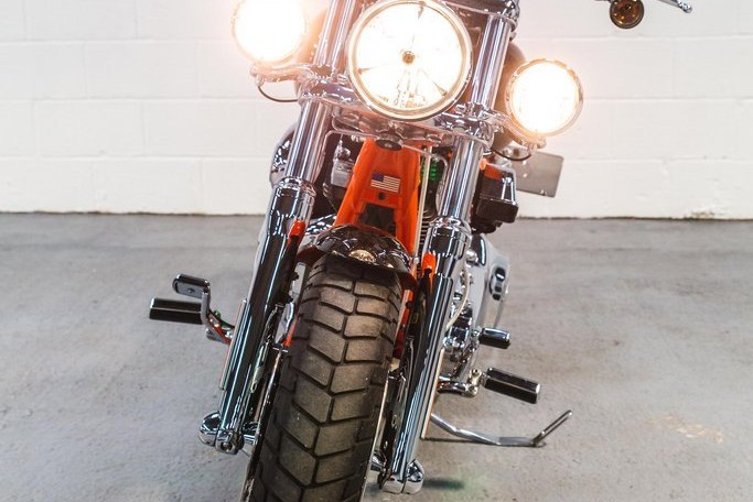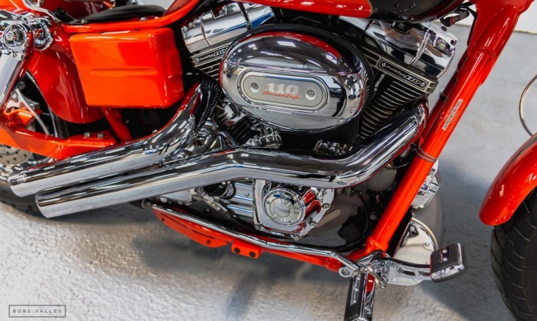 An absolutely exceptional bike in perfect condition. Direct from the Harley-Davidson Custom Vehicles Operations (CVO) department, this bike is fully loaded with the 110CI (1800cc) Screamin Eagle engine and just about as much chrome as is physically possible. The CVO Fat Bob is a limited-production bike, created by the Harley-Davidson CVO group, and based on the Harley-Davidson Dyna Fat Bob. Each bike is produced by a team of highly skilled technicians in a special assembly area at the Harley-Davidson Kansas City Custom Vehicle Operations facility. With the aim to create a limited edition, premium custom motorcycle loaded with exclusive features. This bike really must been seen, the orange pearl paintwork is incredible, with additional Bronze ghost flame detail on the tank and mudguards. The chrome is in as new condition and the engine bay is even lit up by LED lights at night. All original books & folder, 2 keys and unique bronze ignition key still present. Private plate (OO10 USA) also included in sale. Overall this is a very special bike in pristine condition.