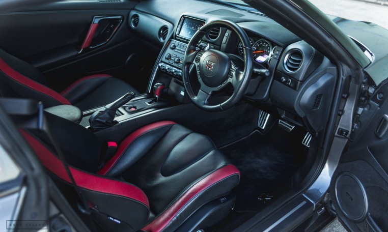 We are delighted to present this stunning 2013 Nissan GT-R, presented in Gun Metal Grey with Black and Red leather Recaro sports seats. Supplied by Nissan Aldershot in September 2013 the car has now covered just 22,000 miles with fully documented service history (6 stamps) from Nissan main dealers and Kaizer independent Nissan specialists. Last service carried out in November 2019 at 21,900 miles. Benefitting from a stage 2 performance upgrade by critically-acclaimed Nissan tuners Litchfield (cost £2,495) combined with an Akrapovic Evolution Line performance titanium exhaust system including carbon exhaust tips (cost £6,250). The car is now running at around 610bhp minimum offering breathtaking performance! The 20″ Alloy wheels are in perfect condition and are wrapped in new matching Michelin Pilot Sport tyres. The front and rear brake discs and pads were replaced with OE Alcon discs and C-S Pro pads in June 2019 at 19951 miles. Overall this is a fantastic example of the GT-R which has obviously been very well cared for by its previous owners (3 in total). The paintwork is in great shape other than some light stone chips to the front bumper which is conducive to this type of vehicle. The interior is immaculate, everything is working as it should and the car also benefits from having a front and rear dash cam installed for added peace of mind.