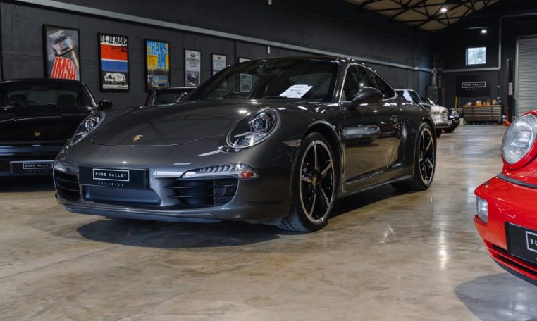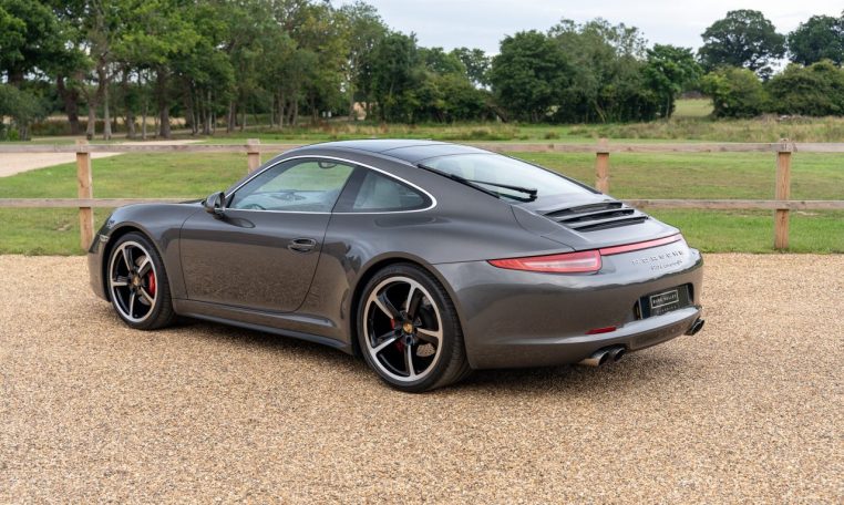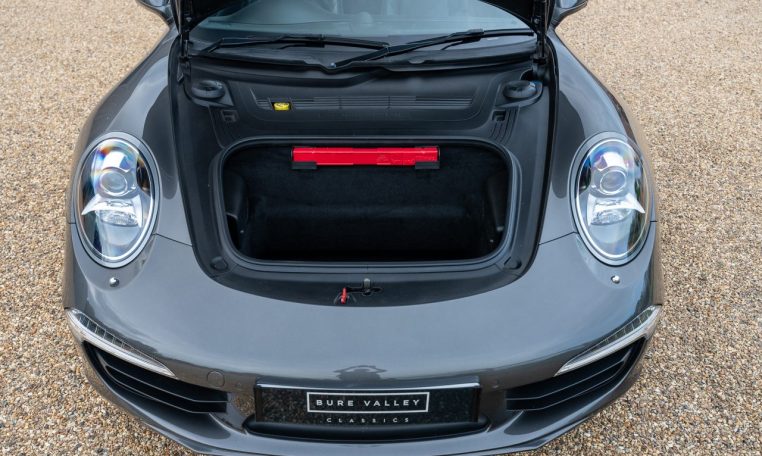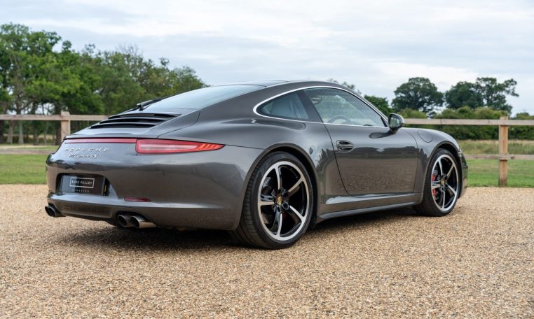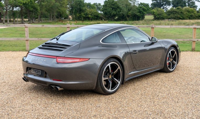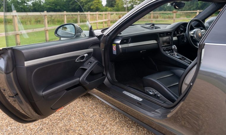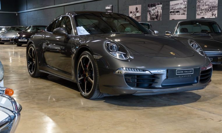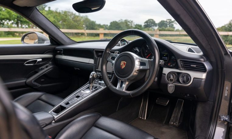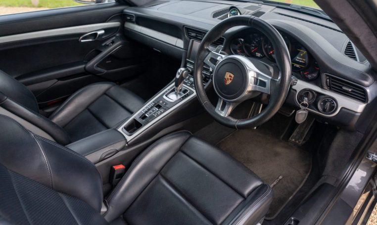 This is an excellent example of the Porsche 911 Carrera 4S Coupe, finished in Agate Grey Metallic with a Black extended Leather interior. First registered in 2013, this car has now covered almost 100k miles but benefits from full Porsche service history, with 7 stamps in the service book and looks and drives like it has done half this milage. The last service was a major including spark plugs and brake fluid at Porsche Silverstone in July 2024. On top of this the car has just had new front brake discs and pads fitted. The MOT is valid with no advisories until Dec 2025. The 3.8 litre flat six engine produces 400 horsepower and is paired with the super responsive 7 speed PDK dual clutch transmission. As a Carrera 4S, it features Porsches all wheel drive system for confident handling in all conditions. The car sits on 20 inch Sport Techno wheels which have recently been refurbished and are fitted with premium tyres.