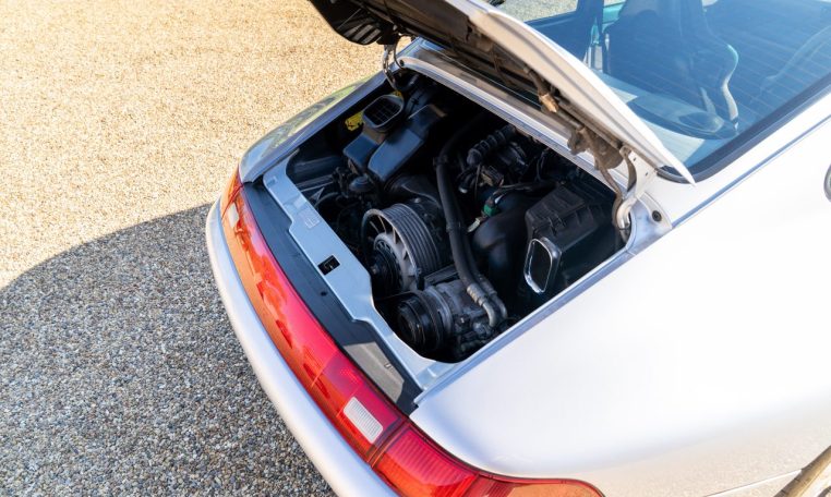 Specification includes the Tiptronic gearbox, air conditioning, electric sunroof, electrically adjusted leather sports seats, and the 159 engine sound option which offers an enhanced exhaust sound, a different airbox and exhaust tips. The car sits on its original 17″ Cup alloys fitted with premium Michelin tyres. The original Becker Indianapolis stereo also remains in place. Documentation is excellent, with the original book pack with stamped service book and owners manual present along with two original keys.